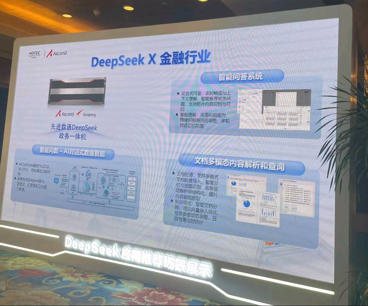 本次大会 不朽情缘 展示了DeepSeek一体机,向业界全方位展示了其在金融科技领域的创新实力。 不朽情缘 DeepSeek一体机的文档多模态内容解析和查询功能备受瞩目。它能够对各类金融文档,如研究报告、监管文件、交易记录等进行全方位解析,将文本、图表、图像等多模态信息转化为可高效查询和分析的结构化数据。金融组织借此可快速定位关键信息、洞察市场趋势、防范合规风险,为决策给予有力支持,实现从数据到价值的高效转化。